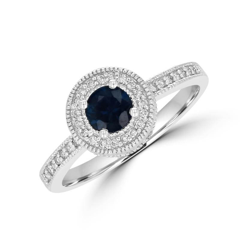 5MM ROUND SAPPHIRE BEADED TRIM WITH DIAMONDS ON SHANK RING