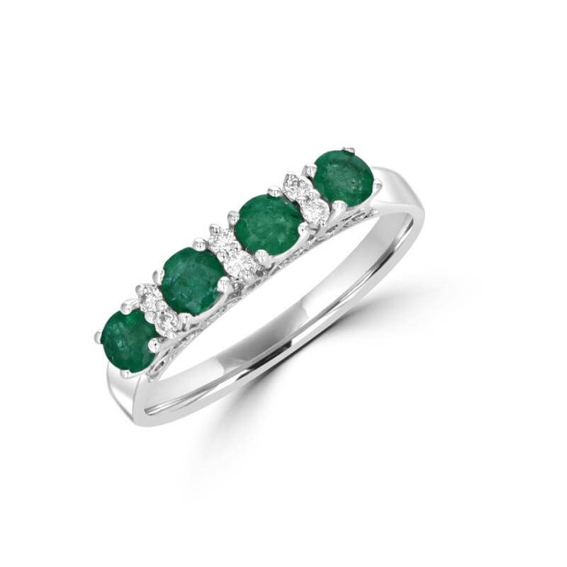 ROUND EMERALD AND DIAMOND BAND RING