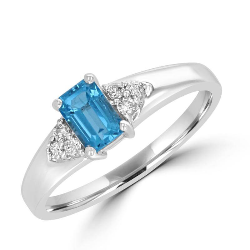 4X6 BAGUETTE BLUE TOPAZ AND THREE ROUND DIAMONDS ON EACH SIDE RING