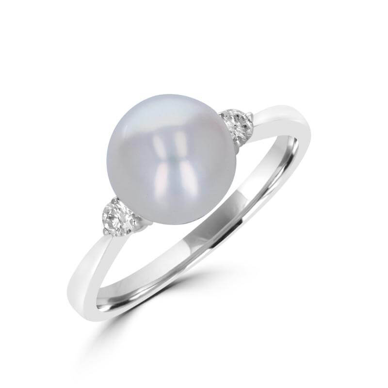 8.5MM FRESHWATER PEARL W/ DIAMOND EACH SIDE RING