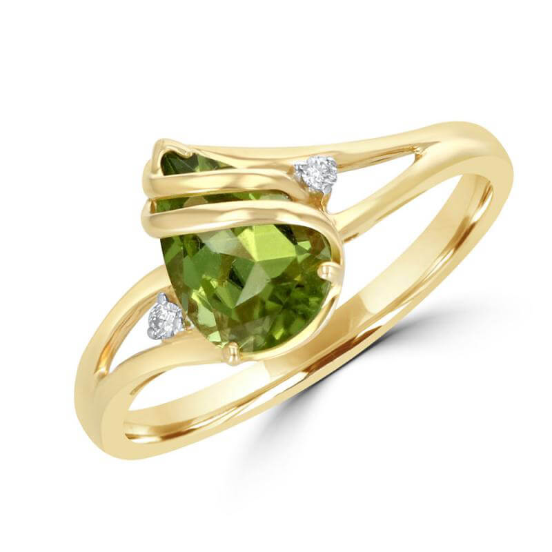 PEAR PERIDOT & ROUND DIAMOND EACH SIDE RING