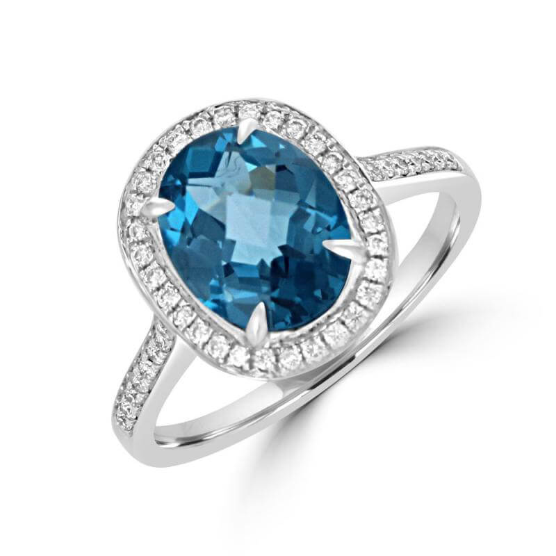 7.5X10.5 OVAL CHECKER LONDON BLUE TOPAZ SURROUNDED BY DIAMONDS RING