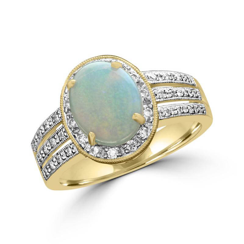 7X9 OVAL OPAL & ROUND DIAMOND RING