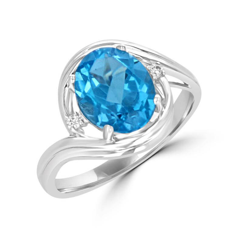 8X10 OVAL BLUE TOPAZ AND ONE DIAMOND ON EACH SIDE RING