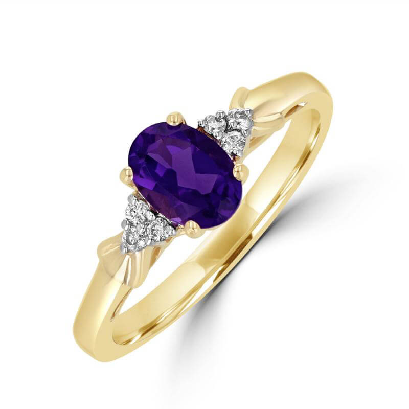 5X7 OVAL AMETHYST AND THREE DIAMONDS ON EACH SIDE RING