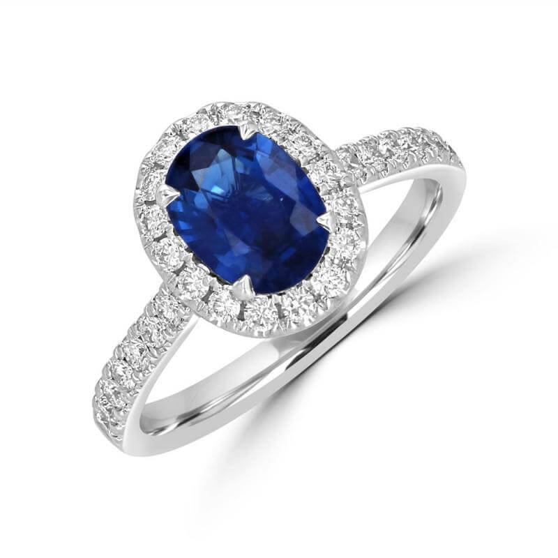 6X8 OVAL SAPPHIRE HALO WITH ROUND DIAMONDS ON SHANK RING