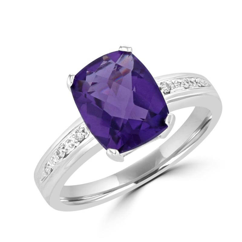 8X10 CUSHION AMETHYST AND ROUND DIAMOND RING