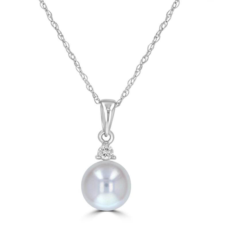 7-7.5MM FRESHWATER PEARL & ONE DIAMOND PENDANT (CHAIN NOT INCLUDED)