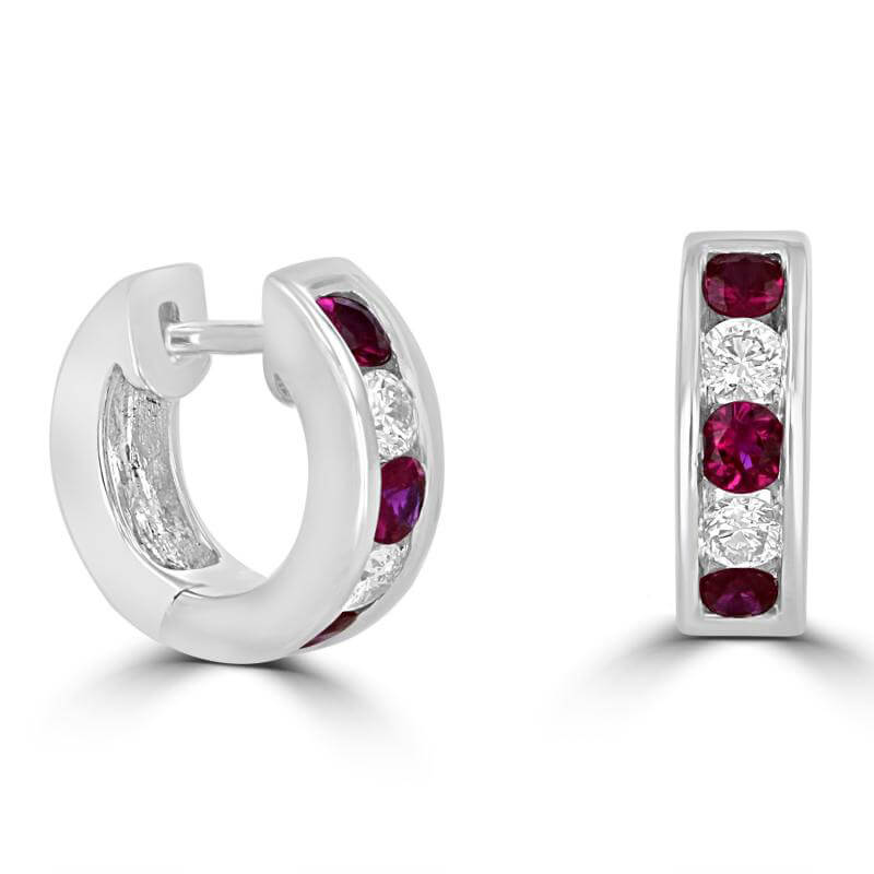 ROUND RUBY & ROUND DIAMOND HUG EARRINGS
