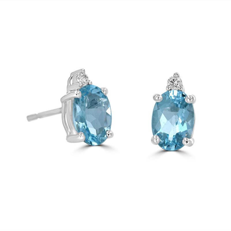 5X7 OVAL AQUAMARINE WITH ONE DIAMOND ON TOP EARRINGS