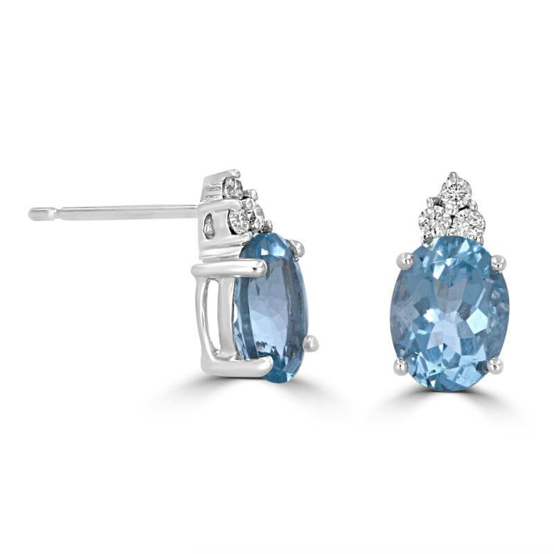 6X8 OVAL AQUAMARINE & THREE DIAMOND ON TOP EARRINGS