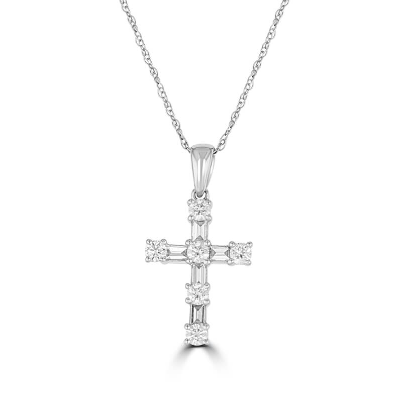 ROUND & BAGUETTE DIAMOND CROSS PENDANT (CHAIN NOT INCLUDED)