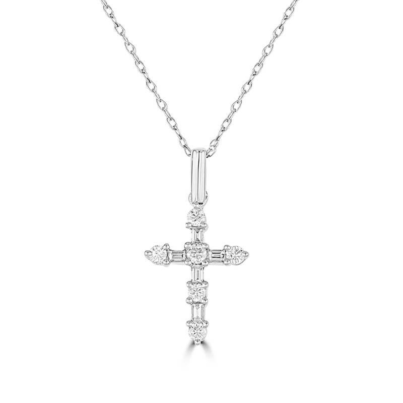 ROUND & BAGUETTE DIAMOND CROSS PENDANT (CHAIN NOT INCLUDED)