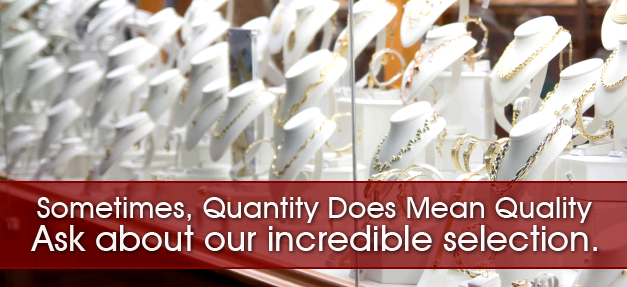 Our new site is populated with 50,000 items such as wedding and engagement rings, beautiful bracelets and beads for your collection. Check out the logo wear if you like sports and of course there are loads of earrings and necklaces available too. You'll see price ranges on our system and that's to account for gold fluctuations and other pricing elements specific to jewelry. Make sure if you see something you like to call, email or come-on in and see us for an up to date price and availabilit...expand